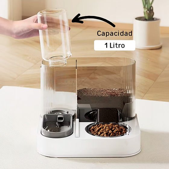 Comedero bebedero todo en uno, ideal para mantener la comida y el agua de tu mascota siempre disponibles y ordenadas.